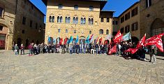 VOLTERRA. Cisl, Cgil, Uil e Fabi portano i dipendenti in piazza dei Priori per il rinnovo del contratto integrativo: il 24 Aprile ci sarà un secondo sciopero