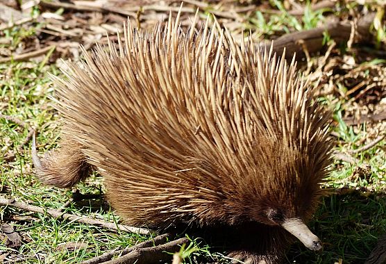 L’ECHIDNA a prima vista appare come un grazioso agglomerato di aculei e di peli da cui sporgono un sottile muso allungato e quattro zampe tozze, quelle posteriori con i piedi rivolti all'indietro.