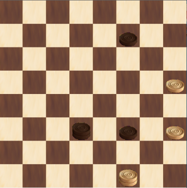 22-18, 31-28, 30-27, 28-24, 16-12 ! 8x15, 27-23 il Bianco riprende il pezzo e vince per I posizione con accorta manovra (24-28, 23x32, 15-19, 32-28, 19-22, 28-23, 22-26 23-19, 26-29, 19-22!, 29-25, 22-26, 25-29, 26-21, 29-25, 21-17, 25-29, 18-14 e il Nero non riesce a raggiungere il biscacco 4/8).