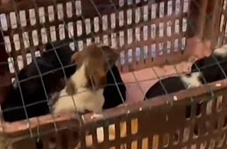 Cinque cuccioli di cane abbandonati tra i rifiuti