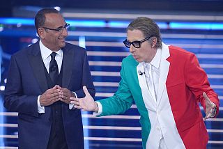 Ubaldi Pantani è stato Lapo in completo tricolore, stregato da Irina Shayk, galante con una violinista dell’orchestra, "Complimenti - ha detto - alla signora che suona l'ukulele da clavicola...". Per poi chiudere con un gran finale, senza travestimento, solo voce per Allegri, Spalletti, Gattuso, Buffon, Vespa, Giletti, Giordano e Insinna.