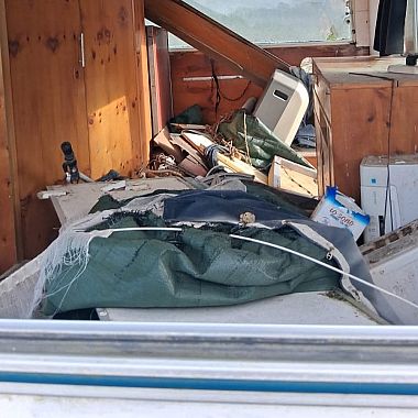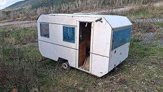 Roulotte carica di rifiuti abbandonata sulla riva del torrente