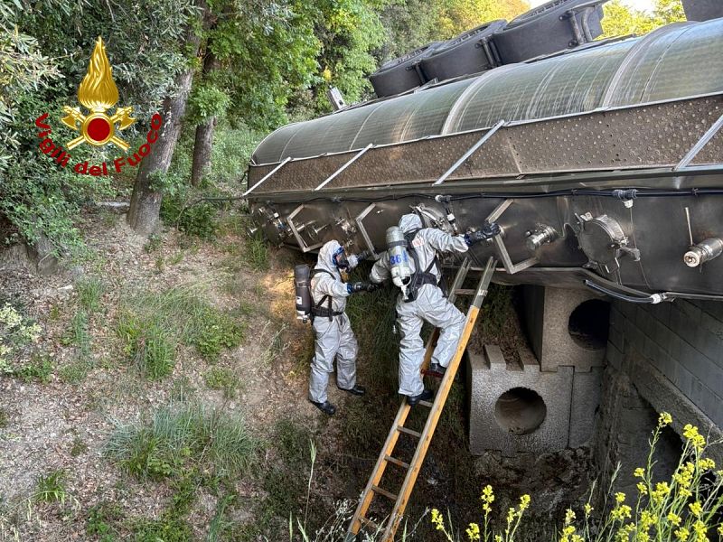 Nei momenti immediatamente successivi, inoltre, c'è stata grande preoccupazione perché il carico del camion cisterna era composto da soda caustica, che è fuoriuscita in minima parte. Per questo, è intervenuto anche il personale specializzato del settore Nucleare, Biologico, Chimico e Radiologico del Comando provinciale dei Vigili del fuoco. Come spiegato da questi ultimi, sono previste le operazioni di travaso della sostanza chimica, dopodiché la cisterna sarà rimossa per ripristinare la circolazione veicolare.