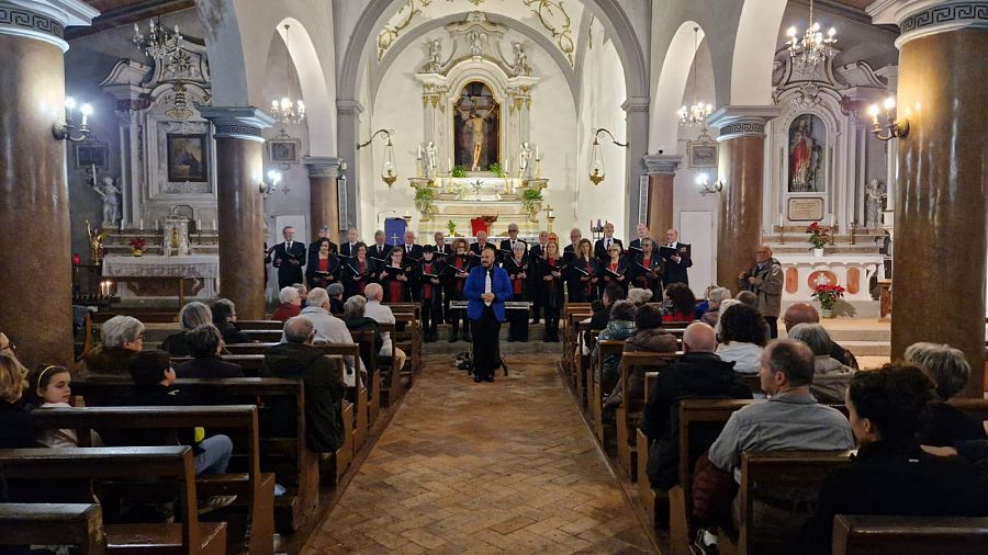 CASTELNUOVO VAL DI CECINA — Si è esibita nella chiesa parrocchiale del Santissimo Salvatore la Corale di Valle, per il tradizionale concerto natalizio, promosso dal parroco don Eduardo De Silva, che ha incantato l'intero territorio.