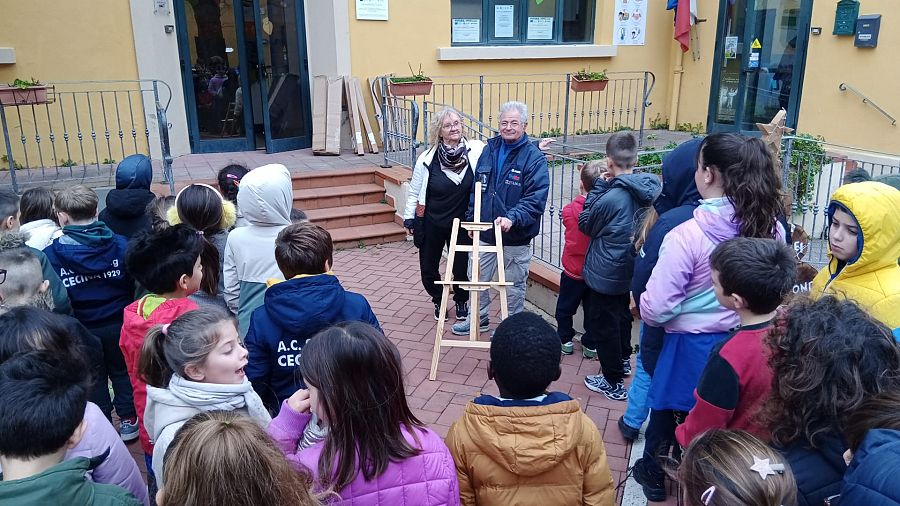 Cavalletti, tele e colori in dono alle materne, primarie e secondarie di Riparbella grazie all'iniziativa della Proloco e delle attività del borgo