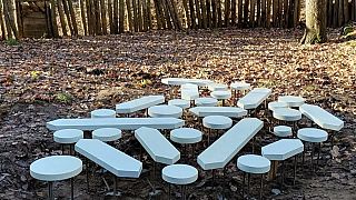 RIPARBELLA — "Intorno alle Origini" è la prima installazione nella natura, che racconta la nascita dell’Universo, prima della sua espansione attraverso il Big Bang. Luca Serasini interpreta questo istante primordiale come una stasi: gli elementi del cosmo, stelle e linee, sono immersi in una calma assoluta, sospesi dal terreno e disposti a formare un disco.