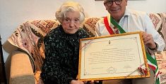 Il sindaco Giacomo Santi porta l'omaggio dell'amministrazione alla signora che, originaria dell'Abruzzo, si è trasferita giovanissima a Volterra