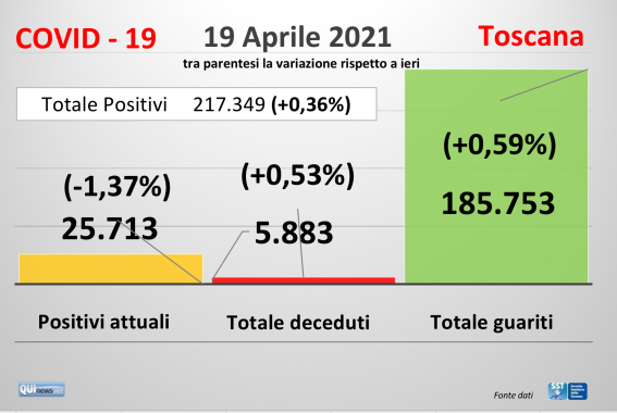 CORONAVIRUS lunedì 19 aprile 2021 ore 13:00