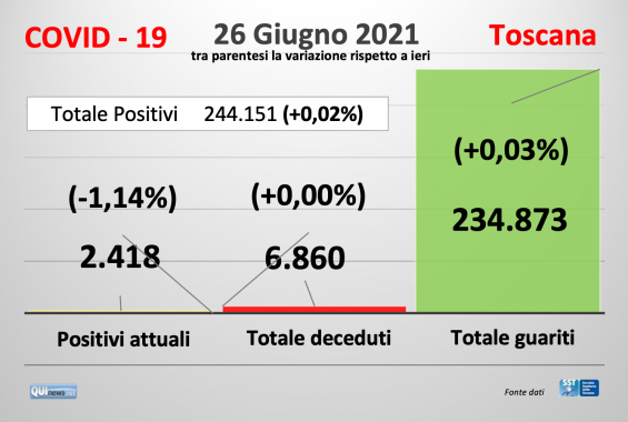 CORONAVIRUS sabato 26 giugno 2021 ore 12:00