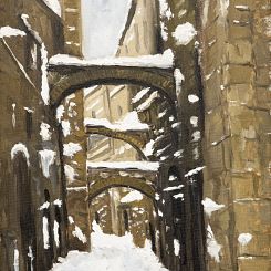 Le 21 opere in mostra raffigurano paesaggi delle campagne volterrane e vie del centro storico della città, restituendo con la poesia del quotidiano i luoghi a lui familiari. Per dipingere Santarsiero prediligeva l'olio su tavola o tela ma nel corso della sua carriera ha sperimentato con uguale padronanza acquerello, china, carboncino. Per anni l’artista ha praticato la pittura en plein air, spostandosi con cavalletto e colori tra i paesaggi toscani, alla ricerca della luce migliore e del momento più vero. In seguito hagestito una galleria nel centro di Volterra diventata luogo d'incontro e di scambioculturale, mentre le sue opere entravano in numerose collezioni private in Italia eall’estero.